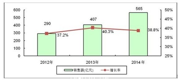 圖 2012-2014年中國半導體(ti) 照明市場規模預測