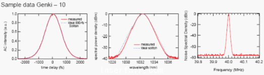 高質量頻域與(yu) 時域脈衝(chong) 波形:不存在脈衝(chong) 台階或者伴線,幹淨的SECH 2光學頻譜,不存在kelly伴帶,具有高度穩定性和重複性的中心波長,帶寬以及頻譜形。