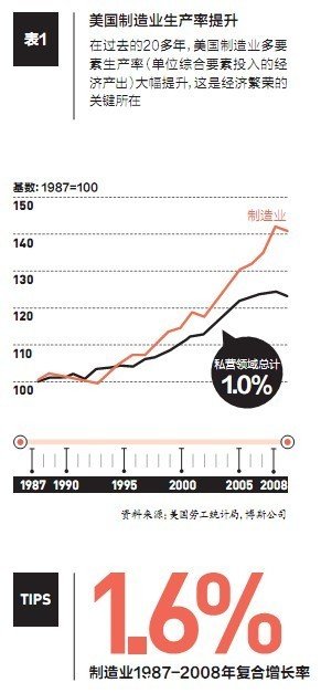 製造業(ye) 對經濟繁榮至關(guan) 重要的原因包括:規模經濟、對創新的影響,以及給其它經濟領域帶來的乘數效應。美國製造業(ye) 占GDP的比重為(wei) 11%,總產(chan) 值達1.47萬(wan) 億(yi) 美元,已超出西班牙的國內(nei) 生產(chan) 總值。若加入設備維護、交通運輸、科技服務和建築等與(yu) 製造業(ye) 直接相關(guan) 的經濟活動,那麽(me) 製造業(ye) 占GDP的比重將上升至15%。也就是說,美國私營企業(ye) 就業(ye) 崗位中的七分之一(13.5%)都與(yu) 製造業(ye) 直接相關(guan) 。如果再算上工廠附近的零售、係統開發和法律服務等間接經濟活動,那麽(me) 製造業(ye) 占GDP的比重將高達25%。回顧曆史,製造業(ye) 產(chan) 品比其它產(chan) 品更適合貿易。因此,強大的製造業(ye) 基礎是美國減少貿易逆差的關(guan) 鍵。美國2010年的貿易逆差達到4970億(yi) 美元,嚴(yan) 重拖累GDP的增長。若不采取措施重振製造業(ye) ,美國經濟可能蒸發掉50%的增加值。如此一來,美國貿易逆差將突破一萬(wan) 億(yi) 美元,這對任何一個(ge) 尋求經濟增長的國家都非常危險。也許很少有人了解製造業(ye) 與(yu) 設計、產(chan) 品開發、質量控製和工廠流程之間的緊密聯係。根據美國國家科學基金會(hui) 數據,在2008年私營企業(ye) 的總研發投入中,製造企業(ye) 占到了67%。從(cong) 2006至2008年,22%的美國製造企業(ye) 推出了新產(chan) 品或有顯著改進的產(chan) 品、服務及流程。相比之下,非製造業(ye) 企業(ye) 的研發隻占8%。創新能夠提高生產(chan) 效率,促進資本流動,提高原材料和能源的利用效率,以及改進生產(chan) 力的其它環節。因此,製造業(ye) 生產(chan) 力的提高能推動經濟增長並提高生活水平。在1987至2008年,美國製造業(ye) 生產(chan) 力的增速比總體(ti) 經濟高出65%。