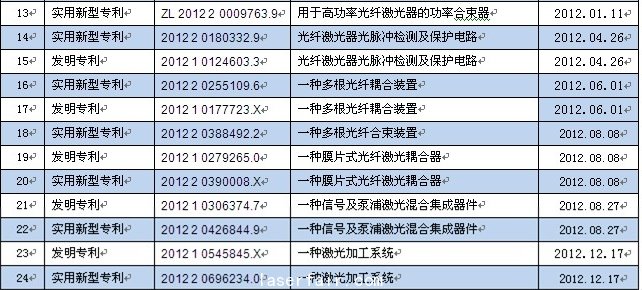 武漢銳科在光纖激光器方麵的專(zhuan) 利如下: