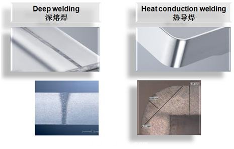 熱傳(chuan) 導焊接需要較低的激光能量密度和較低的焊接速度,但是卻能夠得到非常美觀的焊接表麵效果。於(yu) 此相反,深熔焊接則需要較高的激光能量密度,但能夠得到很高的焊接強度和較高的焊接速度。