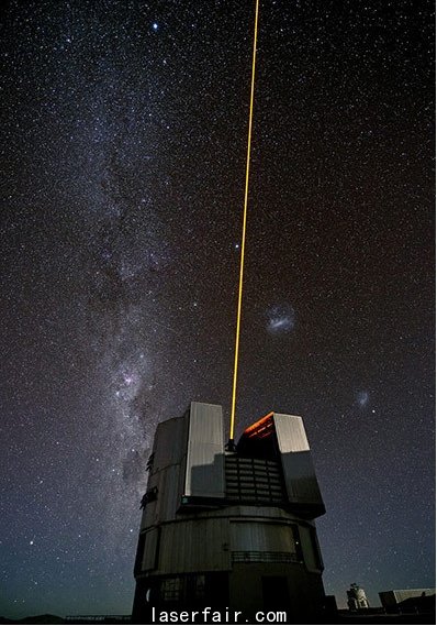 這是位於(yu) 智利境內(nei) 歐洲南方天文台的甚大望遠鏡(VLT),此時它正在對新近安裝到位用於(yu) 導星的新型激光係統進行測試。
