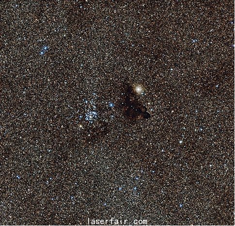 這張照片是歐洲南方天文台望遠鏡拍攝的明亮的星團NGC 6520,以及它近旁的形態獨特的黑暗星雲(yun) “巴納德 86”。
