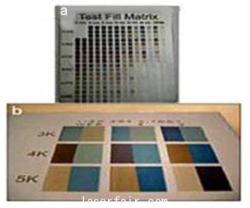 圖:利用光纖激光器在(a)SS304、(b)17-7不鏽鋼材質上獲得的打標效果。