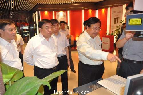 (參觀大族激光展廳。)