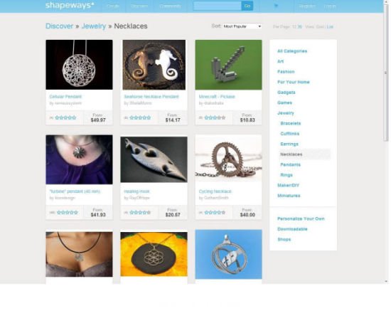 Shapeways網站中用圖形的方式列出了首飾、茶杯、裝飾品以及手機殼等各種產(chan) 品,很多都是商店內(nei) 看不到的個(ge) 性化設計。
