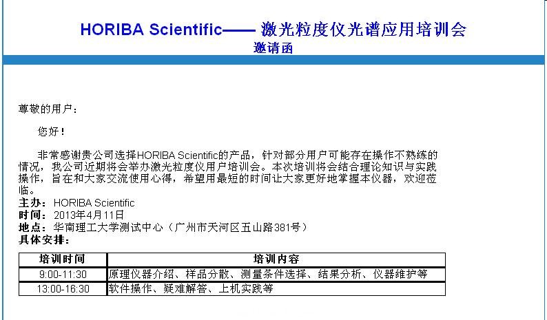4月11日,HORIBA在華南理工分析測試中心舉(ju) 辦了“HORIBA公司激光粒度儀(yi) 培訓”。