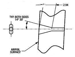 “擴散段”可看作型孔的“形狀”部分,位於(yu) 型孔的出氣口處,用來噴射氣流,以在零件的表麵形成一層氣膜。如何設計擴散段的形狀不在本文所述之列。多年來設計工程師已設計了多種不同形狀的孔。衡量一個(ge) 孔是否與(yu) 其它孔不同,取決(jue) 於(yu) 孔的角度及其位置,形狀各異的孔往往由這兩(liang) 個(ge) 因素產(chan) 生。