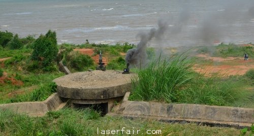 戰鬥一開始就呈現激烈的態勢,由於(yu) 紅軍(jun) 是從(cong) 海灘向模擬島嶼進行登陸作戰,進攻初期時傷(shang) 亡較大,多處冒出紅色的煙霧,不斷有紅軍(jun) 人員從(cong) 戰場撤出。