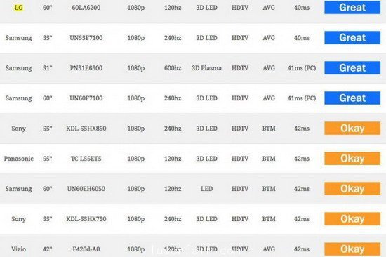那麽(me) 怎麽(me) 了解高清電視的輸入滯後時間呢?一些網站可以幫助你,比如DisplayLag.com,列舉(ju) 出了170款主流電視的滯後速度,另外HDTVtest等網站也擁有輸入滯後的數據庫。總得來說,多泡泡壇子,了解電視的參數是沒有壞處的。