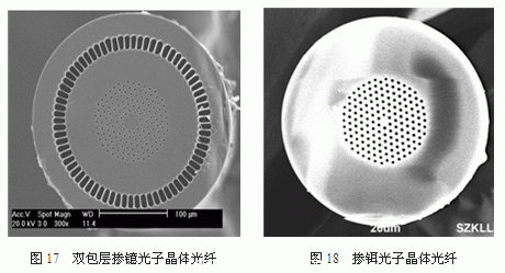 圖18為(wei) 烽火通信研製的摻鉺光子晶體(ti) 光纖,該光纖較常規摻鉺光纖具有更好的抗輻照特性,以及較好的增益特性。