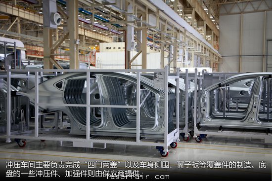 衝(chong) 壓車間主要負責完成“四門兩(liang) 蓋”以及車身側(ce) 圍、翼子板等覆蓋件的製造。底盤的一些衝(chong) 壓件、加強件則由供應商提供。