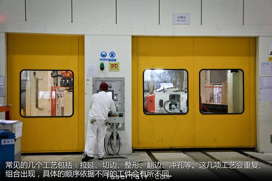 經過初步“修剪”的鋼板將經過衝(chong) 壓線,進行3維的立體(ti) 衝(chong) 壓。衝(chong) 壓並非一次便能完成任務,依據工件的不同,衝(chong) 壓件往往需要經過多輪的衝(chong) 壓、定型。