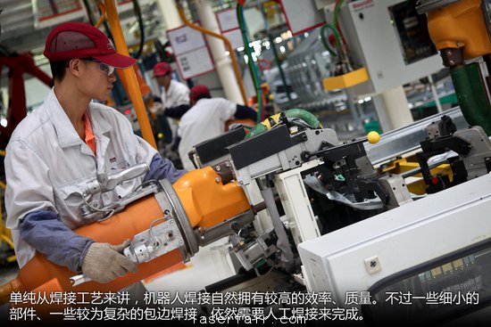 在菲翔身上,地板、分拚、小的分總、側(ce) 圍內(nei) 板、四門包邊等等焊接任務均由人工完成。
