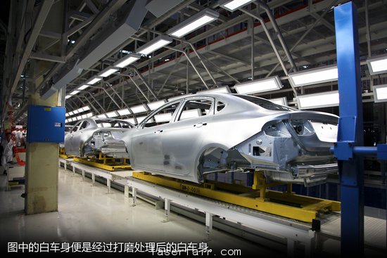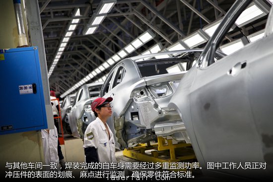 與(yu) 其他車間一致,焊裝完成的白車身需要經過多重監測功率。其中車間的ICP檢查,工作人員以消費者的眼光,對衝(chong) 壓件的表麵的劃痕、麻點進行監測,確保零件符合標準。圖中的白車身便是經過打磨處理後的白車身。