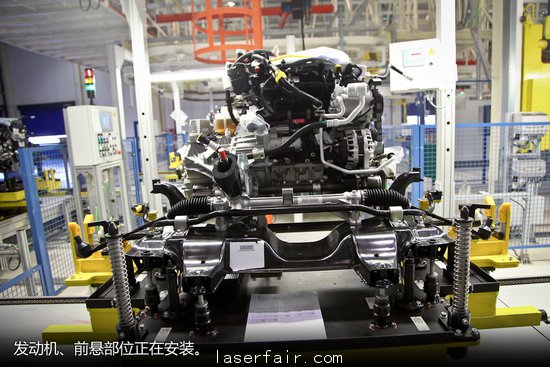 發動機、懸掛等分部件安裝妥當之後,將在合體(ti) 工位與(yu) 車身進行結合。眼前的紅色車身正準備與(yu) 底盤相結合,據悉,車間內(nei) 采用了最新底盤與(yu) 車身合裝工藝,能實現高節拍下螺栓自動擰緊。車身與(yu) 底盤結合之後,將進行下一步的總裝。各種隔音材料、座椅、大燈等部件將在下一個(ge) 環節進行,包括對於(yu) 安全性至關(guan) 重要的氣囊等部件。