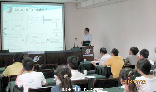 作為(wei) 韓國著名的激光雷達專(zhuan) 家,Kim教授在題為(wei) “History of Cloud Monitoring Lidar in Hanbat national University”的學術報告中,對韓巴國立大學研製的用於(yu) 雲(yun) 水相態探測的多通道拉曼激光雷達的係統組成、算法及與(yu) 其它測量設備的比對實驗情況進行了介紹;同時說明了偏振激光雷達係統的研製情況,著重分析了多次散射效應的影響和橢圓偏光法進行冰雲(yun) 粒子空間取向特征分析的原理算法;並重點闡述了紅外高分辨率太陽光譜的相關(guan) 研究進展。