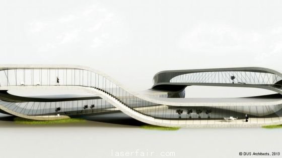 與(yu) 此同時,在阿姆斯特丹市中心一棟辦公大樓的第三層,另一家荷蘭(lan) 公司正醞釀著打印更抽象的房屋。Universe Architecture公司的建築師加納普·瑞傑森納斯(Janjaap Ruijssenaars)將他的設計稱為(wei) 是“景觀房”(Landscape House)。