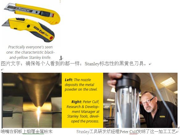 硬質合金是Stanley刀片新一代成分。產(chan) 品創新、 工藝技術和營銷技能的融合是為(wei) 了將有用的刀具使用提高到全新的水平。它的核心是借助於(yu) 通快的激光熔覆解決(jue) 方案,在刀片上熔覆硬質合金。硬質合金的第一次市場營銷活動已經在近期全世界一係列的“軟性上市”後舉(ju) 行。研發經理Peter Culf 說:“軟性上市旨在測試市場:太多、太快的上市措施目前還不符合現階段的市場需求。”這次技術革新是在靠近Sheffield的Stanley Black & Decker英國工廠裏研發並安裝,為(wei) 現有的傳(chuan) 統刀片製造技術添磚加瓦。