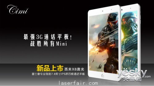 最強3G通話平板 西米X8激光上市西米作為(wei) 國產(chan) 平板電腦的後起之秀,在最近發布了一款非常優(you) 秀的產(chan) 品,西米X8激光3G通話平板,西米勵誌於(yu) 將其打造成為(wei) 最強的3G通話平板,擊敗所有mini。