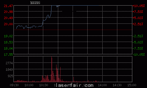 中國網9月6日訊 周五早盤3D打印概念再現強勢,金運激光盤中快速拉升封漲停,報21.46元,漲幅9.99%。