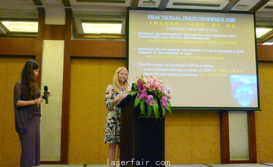 近日,科醫人公司在北京成功舉(ju) 辦了“科醫人美容激光新技術新進展研討會(hui) ”。本次大會(hui) 榮幸邀請到了美國邁阿密大學醫學 院皮膚科的Jill Waibel 教授,以及中國醫學科學院整形外科醫院激光美容中心主任黃綠萍教授,她們(men) 分別與(yu) 廣大皮膚醫師們(men) 分享了激光瘢痕治療和OPT(完美脈衝(chong) 技術)皮膚美容方麵的臨(lin) 床經驗與(yu) 建議,此外科醫人公司市場總監張敏女士也向與(yu) 會(hui) 者介紹了美容激光的最新技術及最新進展。北京大學人民醫院皮膚科主任張建中教授擔任大會(hui) 主持。