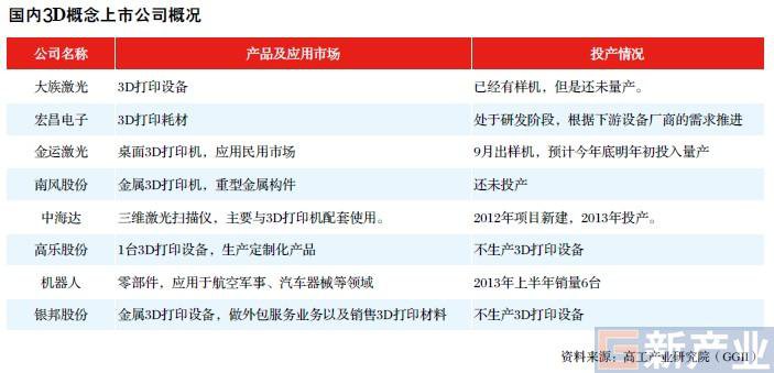 3D打印概念股成為(wei) 今年股市中漲幅最快的板塊,然而《新產(chan) 業(ye) 》調查顯示,目前大部分上市公司的3D項目還沒有實際產(chan) 出,3D打印仍然處於(yu) 技術研發和製造樣機階段。