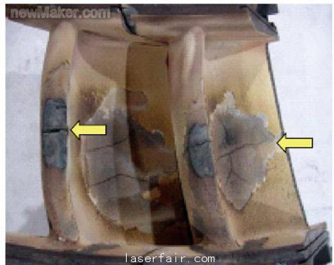 圖5采用LENS技術修複的黑鷹直升機發動機葉輪的葉片。修複位置為(wei) 葉片的導向邊,導向邊極易受到磨損以及外來損害(FOD)。修複的部分具有近終型輪廓,且性能優(you) 於(yu) 原始材料的性能。經低周疲勞測試:在5000~50000r/min的循環應力作用下,承受了5000次交變應力無事故而通過測試。