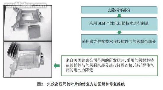 傳(chuan) 統的修複方式為(wei) 移除損壞的閥門中心部分,然後采用粉末冶金的方法鑄造移除的閥門中心部分,再采用釺焊技術焊合鑄造插件和噴氣閥的剩餘(yu) 部分。這一修複工藝的缺點是鑄造閥門的中間部分需要開模,加工過程所需的時間長,另外經釺焊工藝後,噴氣閥的耐久力變差。因而提高修複後的噴氣閥的耐久力是全球航空航天領域工程技術人員努力的目標。新型的工藝是通過SLM技術製造移除的噴氣閥中間部分,在采用激光焊接技術連接SLM製造的插件和剩餘(yu) 的噴氣閥部分[13]。