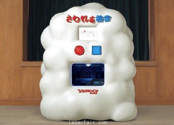 這部特別的打印機來自東(dong) 京一個(ge) 叫做Hands on Search的研究項目,由Yahoo Japan全額讚助。項目宗旨打的是讓搜索具象化。打印機的外觀大致就是這樣。兩(liang) 個(ge) 紅藍按鈕,物品在這個(ge) 大箱子內(nei) 打印。特色在於(yu) 語音搜索功能。