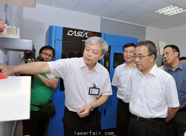 胡春華詳細詢問了廣州電子公司在3D打印技術研發的自主創新情況。廣州電子公司董事長李耀棠匯報了自主研發的激光固化3D打印機、熔絲(si) 沉積3D打印機和桌麵型個(ge) 人3D打印機的技術研發及應用情況,介紹了3D打印技術在我省的產(chan) 業(ye) 化應用及未來的發展趨勢。
