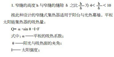 2.窄縫的高度h與(yu) 窄縫的縫隙δ之比這種集熱器的特點是:隻要太陽光熱照進窄縫後會(hui) 全部吸收,而熱損失則降低到最低限度———太陽光熱隻進不出,抑製了自然對流的熱損失。適用於(yu) 高熱性能的平板太陽能集熱器。在豎直平麵上形成熱邊界層,靠近壁麵附著的不動層,隨高度升高而變厚。麵對麵的熱邊界不動層相互接觸,這樣空氣就難以流動,也不存在自然對流的熱損失。