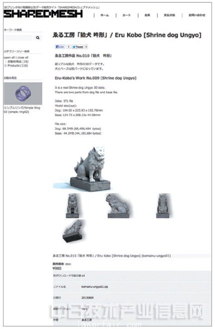 | Sharedmesh的銷售網站。著眼於來自海外的訂單,還提供具有日本特色的石獅子、脊頭瓦等的設計數據。 |