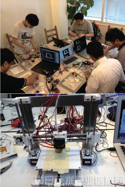 | 組裝作坊內的景象。組裝大約需要4個小時,當場就可帶走設備。還可以通過該作坊交到可互通3D打印機信息的夥伴。 |