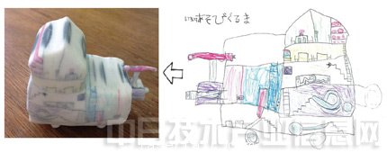 | 將孩子描繪的2D圖畫用3D打印機輸出製成的作品。“自己畫的畫直接變成立體造型躍出紙麵,這就是rinkak想要實現的世界。” |