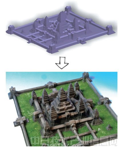| 根據“Virtual World”提供的吳哥窟3D數據,使用3D打印機輸出並加工、上色的成品。 |