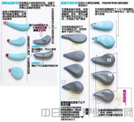 反複進行實驗和修正的造型開發流程如下圖所示。這是蜻蜓鉛筆首次在開發修正帶時進行這種基於(yu) 人體(ti) 工學的用戶測試。