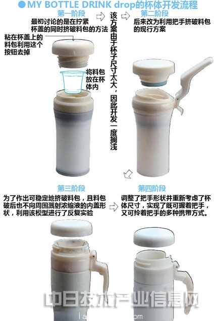 濃縮飲料和料包由三得利主導設計和製造。而杯子由日本THERMOS公司負責開發。為(wei) 了輕鬆弄破料包,如何設計杯子和料包的形狀?為(wei) 使飲料散發出香味,杯口又該設計成什麽(me) 形狀?雙方圍繞這些問題多次進行了溝通。