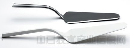 | 在MU係列中,對最終試製品改進最大的是“蛋糕鏟”(5800日元,含稅)。由於試製品(前麵)不能立住,因此實際產品(後麵)縮短了柄部,改進了柄的彎曲度。 |