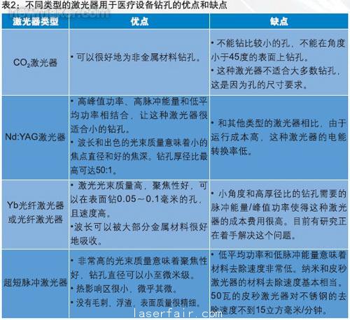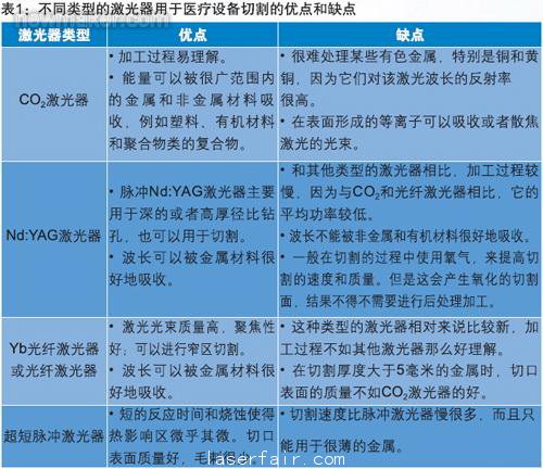 從(cong) 製造商的報告中可以清楚地看到,對於(yu) 製造醫療設備所使用的一般材料,CO2和Yb光纖激光器這兩(liang) 種類型都可以勝任切割和焊接各種薄和厚的材料的工作。超短脈衝(chong) 激光器最好是用於(yu) 切割和鑽孔那些要求熱影響區(HAZ)很小或者沒有的薄的材料,或者是對完成的部件進行後處理。