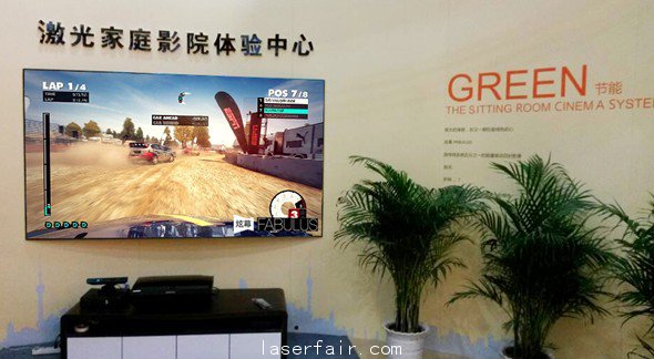現場工作人員介紹說,“炫幕”激光電視采用全球最先進的ALPD(先進的激光熒光粉顯示技術)顯示技術,采用激光+稀土發光材料支撐,激光電視的色域覆蓋率,理論上可以高達人眼色域範圍的90%以上,比目前LED電視最高的62%的色域覆蓋率提高了一個(ge) 檔次——由於(yu) 激光電視機色彩鮮明、亮度高、屏幕尺寸靈活,使用在家庭的客廳能達到在影院觀看電影般的效果。