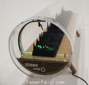 這貨專(zhuan) 門配備了一個(ge) 傳(chuan) 感器,一束用來識別聲紋的激光掃過,總統就開始演講了,側(ce) 麵的播放控製也是用手勢感應來激活。他們(men) 這些玩兒(er) 數字藝術的人想法的確是夠創意啊有木有?其實這種記錄聲音的方式和老式的黑膠唱片的原理是一樣的,就是通過聲音所形成的有特殊紋理、凹凸不平的波紋來轉換成聲音後實現的。但是用3D打印這麽(me) “高大上”的手段來實現,並且正好是總統展望3D打印行業(ye) 未來時的一段話,如果3D打印真有了“工業(ye) 革命”的節奏,那這貨的紀念意義(yi) 就非凡了。