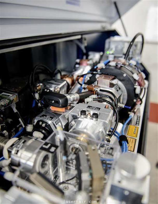 碟片式激光器的心髒:一個(ge) 腔體(ti) 可產(chan) 生3 千瓦的激光且光束質量很高。