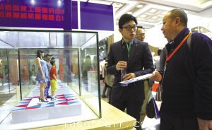 12月3日,為(wei) 期2天的上海國際3D打印技術暨快速成型展覽會(hui) 在上海國際會(hui) 議中心舉(ju) 行。本次展覽集結了來自中國、美國、德國、新加坡等地的46家3D打印龍頭企業(ye) ,共設展位71個(ge) ,集中展示了3D打印的最新產(chan) 品和技術。圖為(wei) 當日在上海國際3D打印技術暨快速成型展覽會(hui) 上,商客在展位前谘詢。