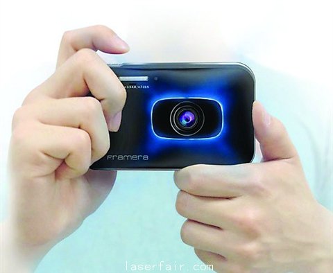 這是設計師帶來的激光領地照相機,相機的鏡頭旁邊,是一個(ge) 方框狀的激光投影儀(yi) ,能在你的前方根據距離,投射出剛好圍住你所要拍攝範圍的一個(ge) 亮藍色方框,醒目地提醒周圍的人,這裏正拍照,請繞行。