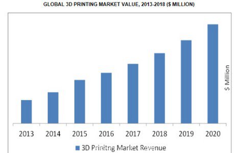 市場研究機構對3D打印行業(ye) 發展的預期在不斷向上修正。據MarketsandMarkets最新的市場研究報告稱:2013年至2020年,3D打印市場的複合年增長率預計為(wei) 23%,而且在2020年將達到84.1億(yi) 美元的市場容量。這份研究報告的主題為(wei) :“3D打印市場及技術(SLA,SLS,EBM,FDM,EBM,LOM,3DP)、材料(聚合物,金屬)、應用(航空航天、汽車、消費、醫療保健、政府及防禦係統)和地域(美洲、歐洲、亞(ya) 太地區及世界其它地區)(2013至2020年)。”