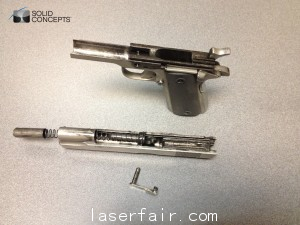 實際上就在上個(ge) 月,即2013年11月7日,Solid Concepts剛剛宣布成功製造了世界首款3D打印的金屬手槍。該手槍是經典的.45口徑1911半自動手槍的複製品,這款手槍是約翰·勃朗寧(John Browning)在一個(ge) 世紀前研發的,做為(wei) 標準裝備服務美軍(jun) 超過70年。在當初公布的演示視頻中,Solid Concepts使用這款3D打印的複製強連續擊發了50發子彈。本周,該公司宣布其3D打印的1911金屬槍已經完成了2000多次擊無故障的成功射擊。