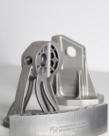 前麵:夾層結構機翼的鈦金屬樣品;中間:拓撲優(you) 化的A380不鏽鋼支架;後麵:傳(chuan) 統的A380不鏽鋼支架——所有樣品都是在増材層製造中心(CALM)使用電子束和激光回廊(laser chambers)製造的。