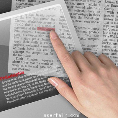 1、它可以作為(wei) 透明字典來使用,這樣對我們(men) 的學習(xi) 會(hui) 有很大幫助。如果我們(men) 在看一篇英語文章,遇到不懂的地方,隻需打開透明平板電腦,在不懂的地方點一下或圈一下,答案就會(hui) 立刻顯示出來。就像圖1裏那樣,非常簡單。
