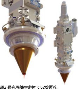 激光熔覆是一種可以用來增加金屬組件的耐磨損、耐腐蝕、抗衝(chong) 擊性能的堆焊方法。這一方法利用精確聚焦大功率的激光束來形成焊接熔池並將金屬粉末加入到其中。粉末經過一連串的惰性保護氣體(ti) 通過激光束同軸送入。激光束的準確性使得可以得到稀釋度極低的致密熔覆層(<5%),同時熔覆層與(yu) 基體(ti) 之間具有完美的冶金結合。塗層可以應用於(yu) 許多地方,並可以根據不同情況來設計其組成以克服每個(ge) 組件相應的失效機製。圖2展示了激光熔覆頭。與(yu) 激光熔覆相關(guan) 的主要好處之一就是能夠很好地控製熱量輸入,從(cong) 而實現兩(liang) 相沉積的金屬基複合(MMC)結構:
